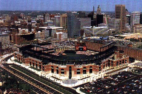 Camden Yards is a new type of ballpark, combining an open air, natural turf stadium and an idiosyncratic field with state of the art concession stands and amenities. It is designed to complement the architectural idiom of its neighborhood, and once inside: